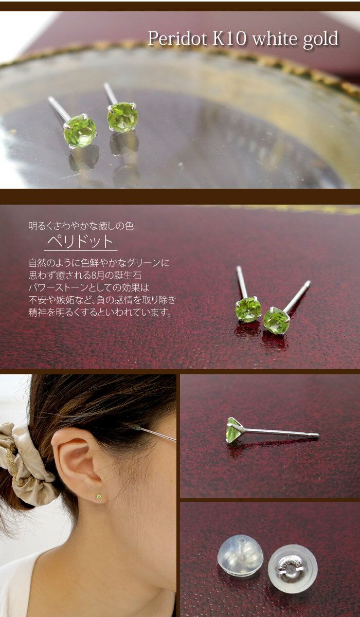 ▼その他各種アイテムはこちら 【天然石ピアス】 【8月の誕生石ペリドット】 K10WG 10金 ホワイト ゴールド ペリドット 3mm 8月 誕生石 ベーシックジュエリー 【ベーシックジュエリー:ピアス】 【石色:緑】 楽天BOX受取対象商品/銀の蔵/alize/アリゼ/ありぜ/楽天市場/アクセサリー/ジュエリー/スキンジュエリー/Accessory/Jewelry/big sale/春/夏/秋/冬/春コーデ/夏コーデ/秋コーデ/冬コーデ/コーデ/モテコーデ/あす楽/あすらく/メール便/DM便/装飾品/特別/人気/大人気/話題/ランキング/ヒット/トレンド/マスト/最旬/ときめき/こだわり/誕生日/記念日/プレゼント/ギフト/贈り物/喜ぶ/彼女/妻/奥さん/娘/姉/母/お母さん/祖母/女性用/レディ/カジュアル/セレクト/フェミニン/オフィス/OL/エスニック/モテる/可憐/清楚/セットアップ/旬/可愛い/かわいい/きれいめ/モテアイテム/存在感/流行り/定番/2016/2017/大人/20代/30代/40代/50代/60代/マルチ/社会人/大学生/高校生/高級/新婚/女友達/卒業祝い/入学祝い/就職祝い/入社祝い/大切な人に贈る/かっこいい/バースデー/誕生日/ホワイトデー/バレンタインデー/クリスマス/xmas/パーティー/お呼ばれ/結婚式/良品/高価/厳選/おしゃれ/勝負/ファッション/ブランド/イチオシ/オススメ/安い/格安/激安/やすい/リーズナブル/プチプラ/セール/SALE/効果/専門店/取扱店/店舗/お店/ショップ/工房/新宿/中野/東京都/関東/日本/JAPAN