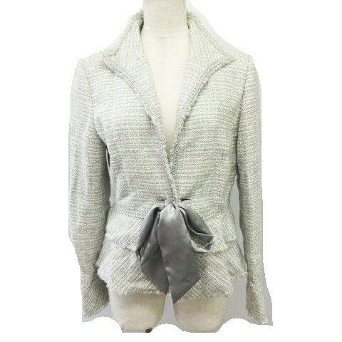 【中古】エル ELLE ツイードジャケット ブレザー アウター シルバー ホワイト サイズ40 レディース 【ベクトル 古着】 190821 ベクトル マークスラッシュ